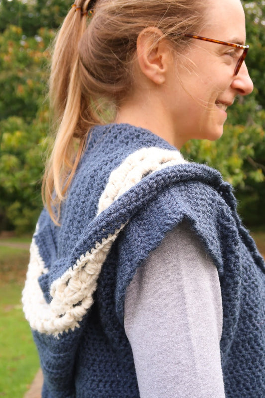 Dusk Hooded Vest Crochet Pattern by Hortense Maskens
