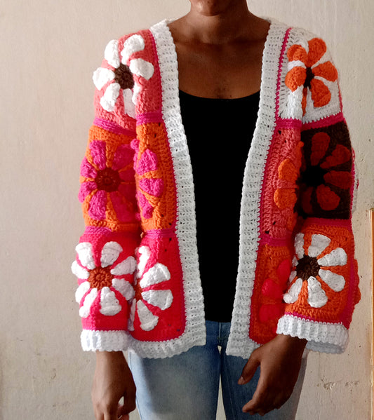 Retro Daisy Granny Square Cardigan Crochet Pattern by Helencraftcrochet