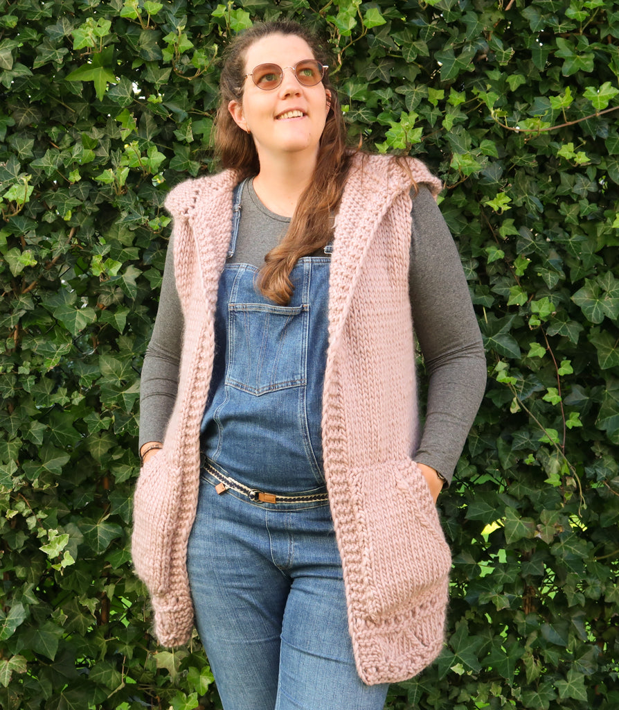 King and Eye Super Bulky Merino Yarn (Super bulky weight 6, 100% merino, 65m/71yd, 100g/3.6oz) in blush pink: o Sleeveless: 7(9,11,13,15)skeins o With sleeves: 10 (13, 14, 17, 19) skeins