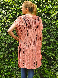 The Ariel boho crochet summer cardigan is an easy light and airy summer cardigan. Wear it over a tank top with simple jeans, it instantly uplifts your outfit. Long with lots of drape, it’s perfect for a summer stroll on the beach. Made out of 2 simple rectangles, it is perfect for beginners. Although it’s worked with sport weight yarn, the big hook and airy construction make it a quick make.