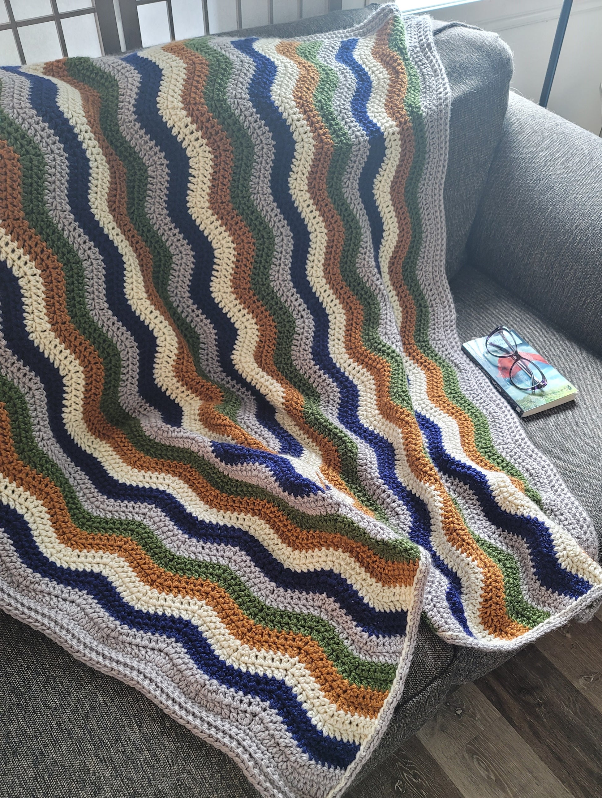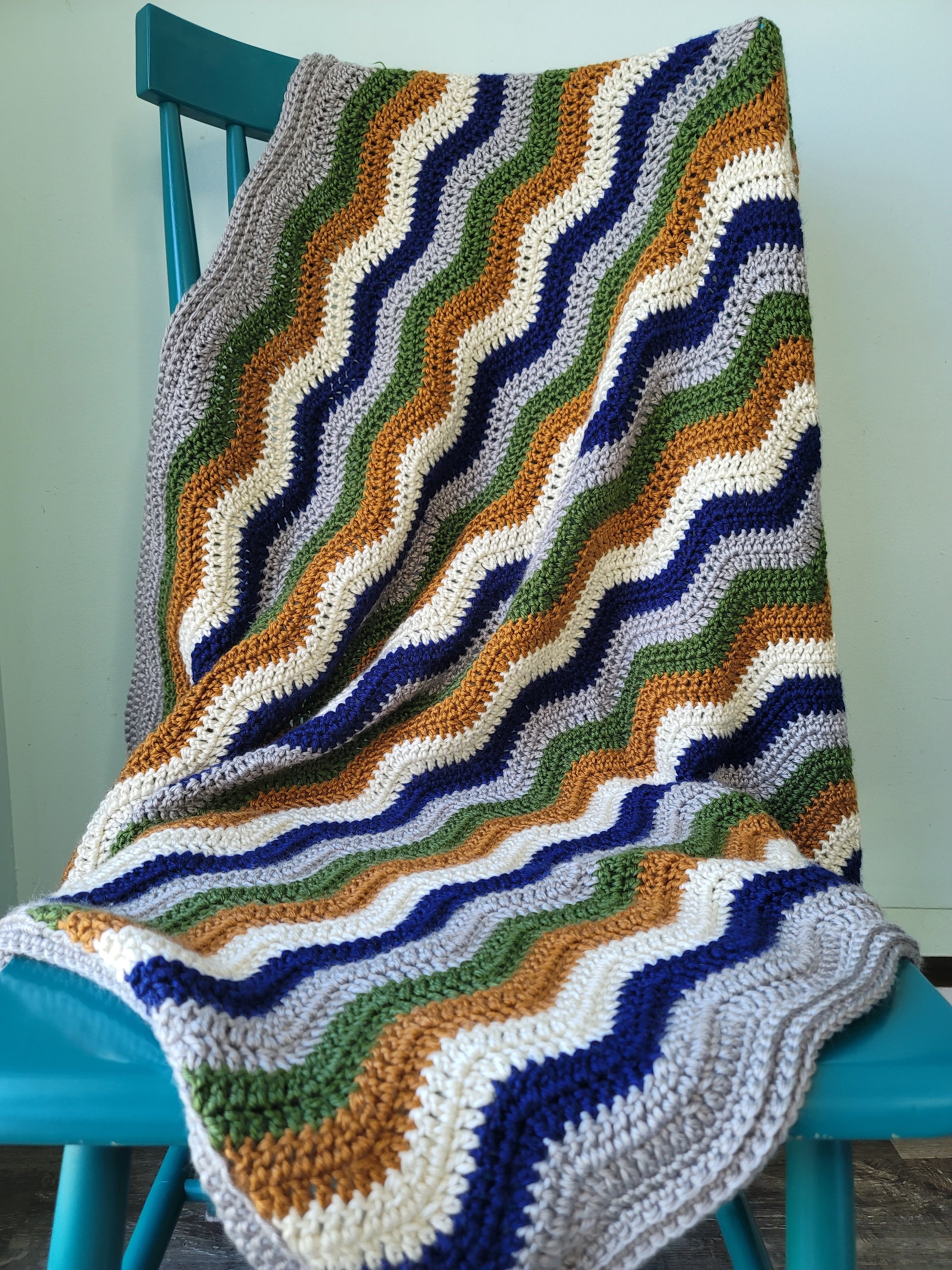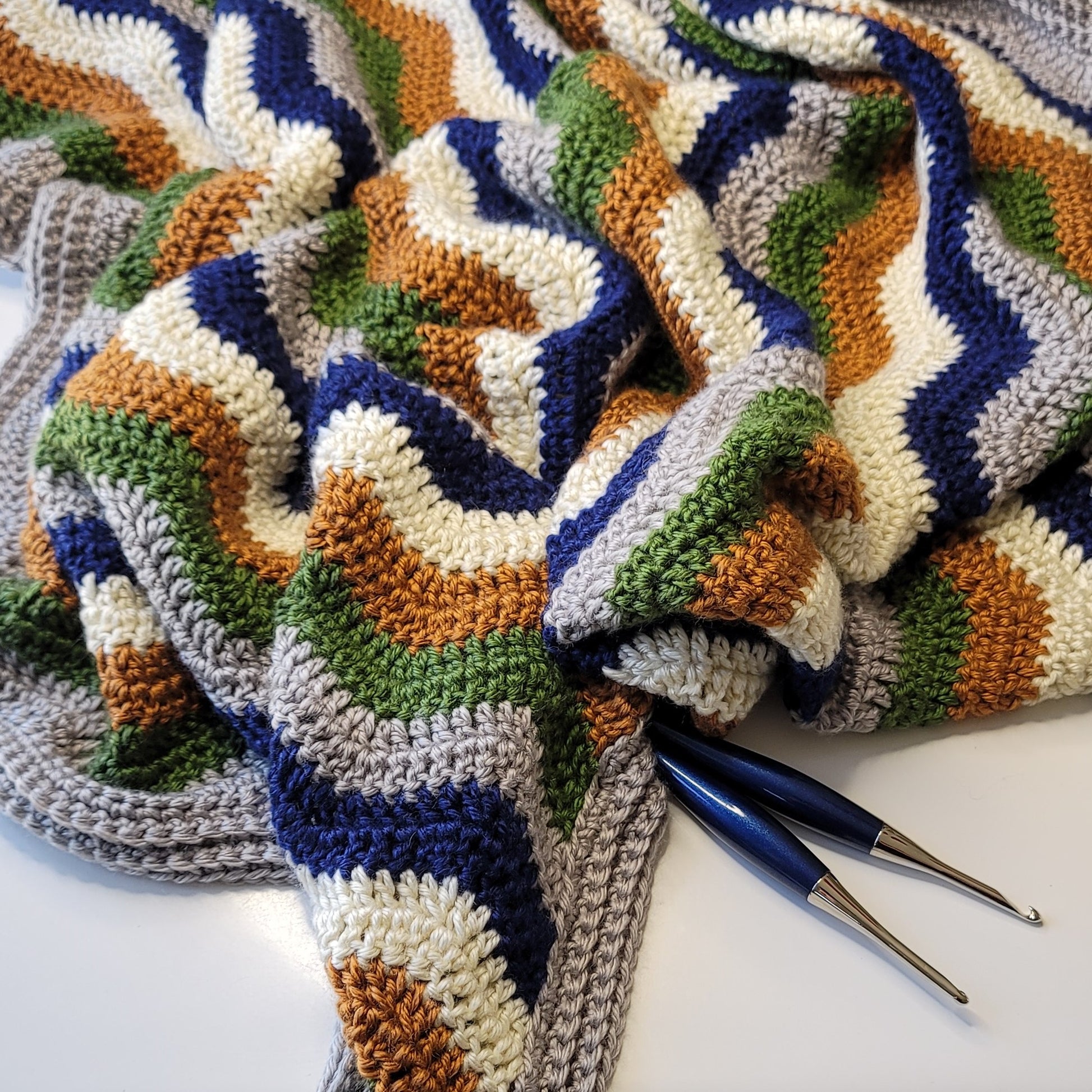 What’s this? This is the Boreal throw, designed with Wander acrylic from Furls Crochet. Why should I make this? The classic chevron stripe and bold colours make this throw an easy favourite. When will this get the most use? When you want to cuddle up with a book and glass of wine or cup of coffee. Who is it for? For your home or to offer as a gift, this throw is for everyone. Where do I start? This pattern is rated Easy - you’ll need to know or be eager to learn the basic crochet stitches and colour changing. You will need a total of 1100 g of worsted weight yarn in 5 colours, a 5.5 mm hook and a 6 mm hook. Other notions: a yarn needle and 2 stitch markers. Feedback is always welcome, and I hope to see your projects! © ACCROchet 2022