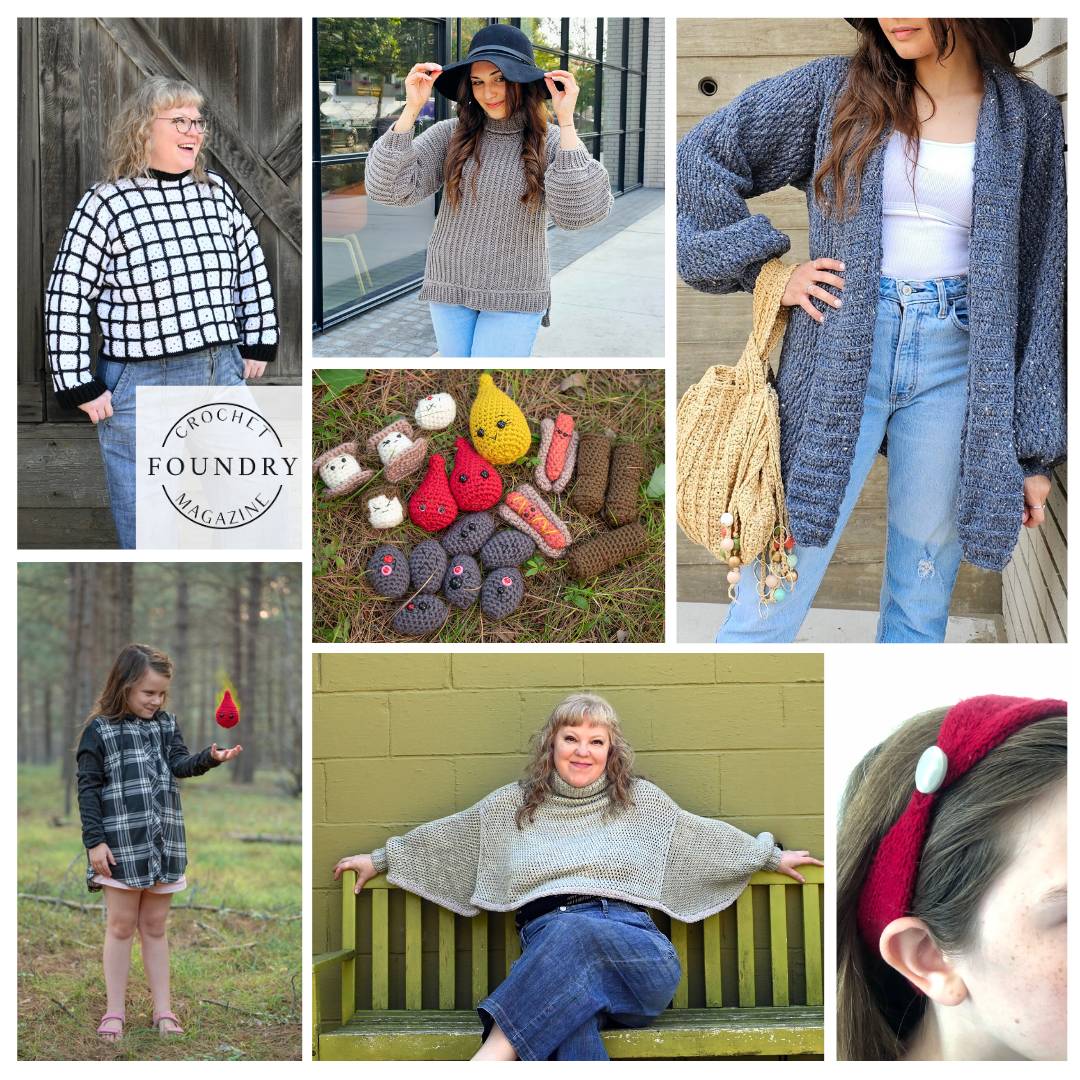The Crochet Foundry Fall 2023 Digital Bundle includes 3 issues of Crochet Foundry Magazine. Each issue contains 7-8 fall projects ranging from garments, to accessories, to home décor!
