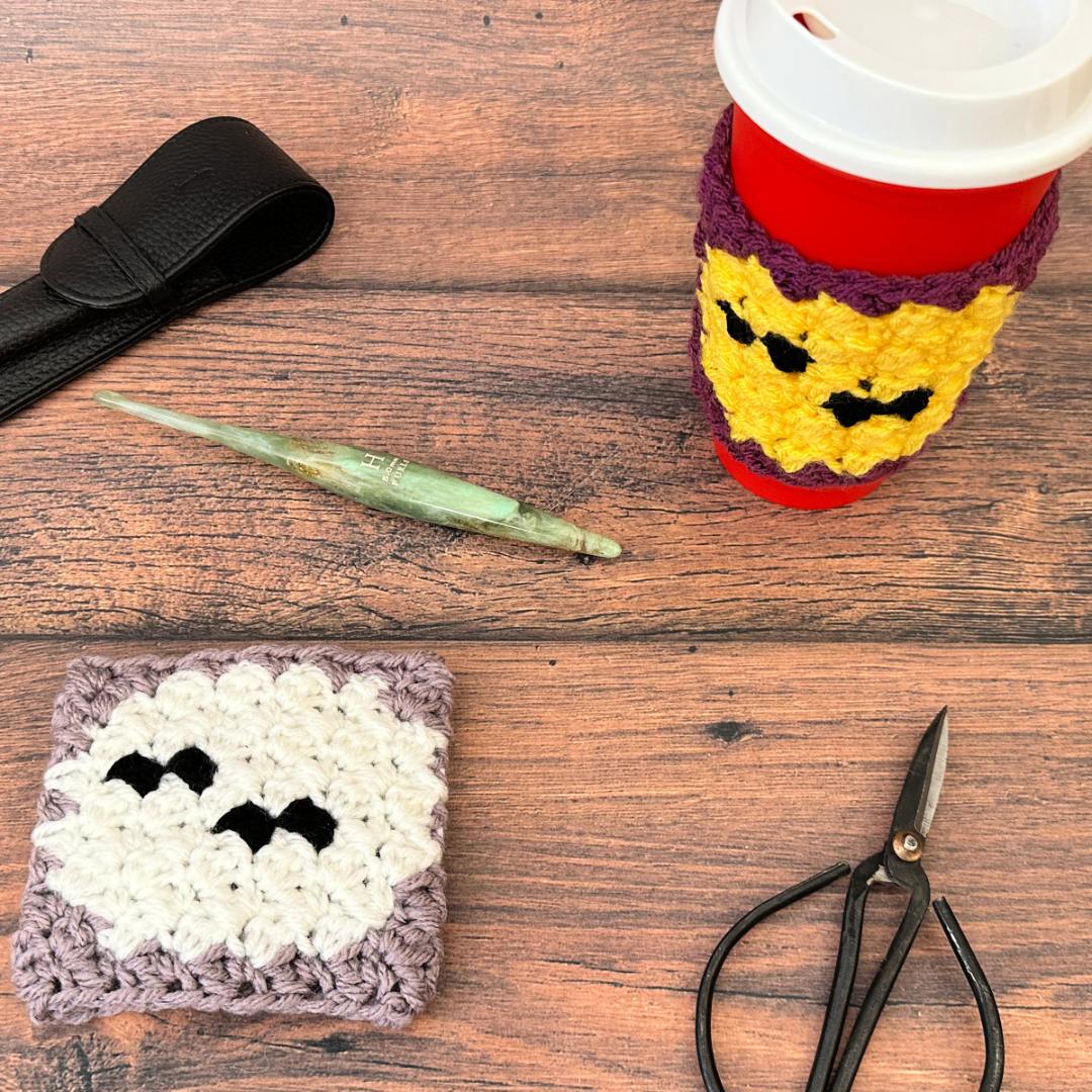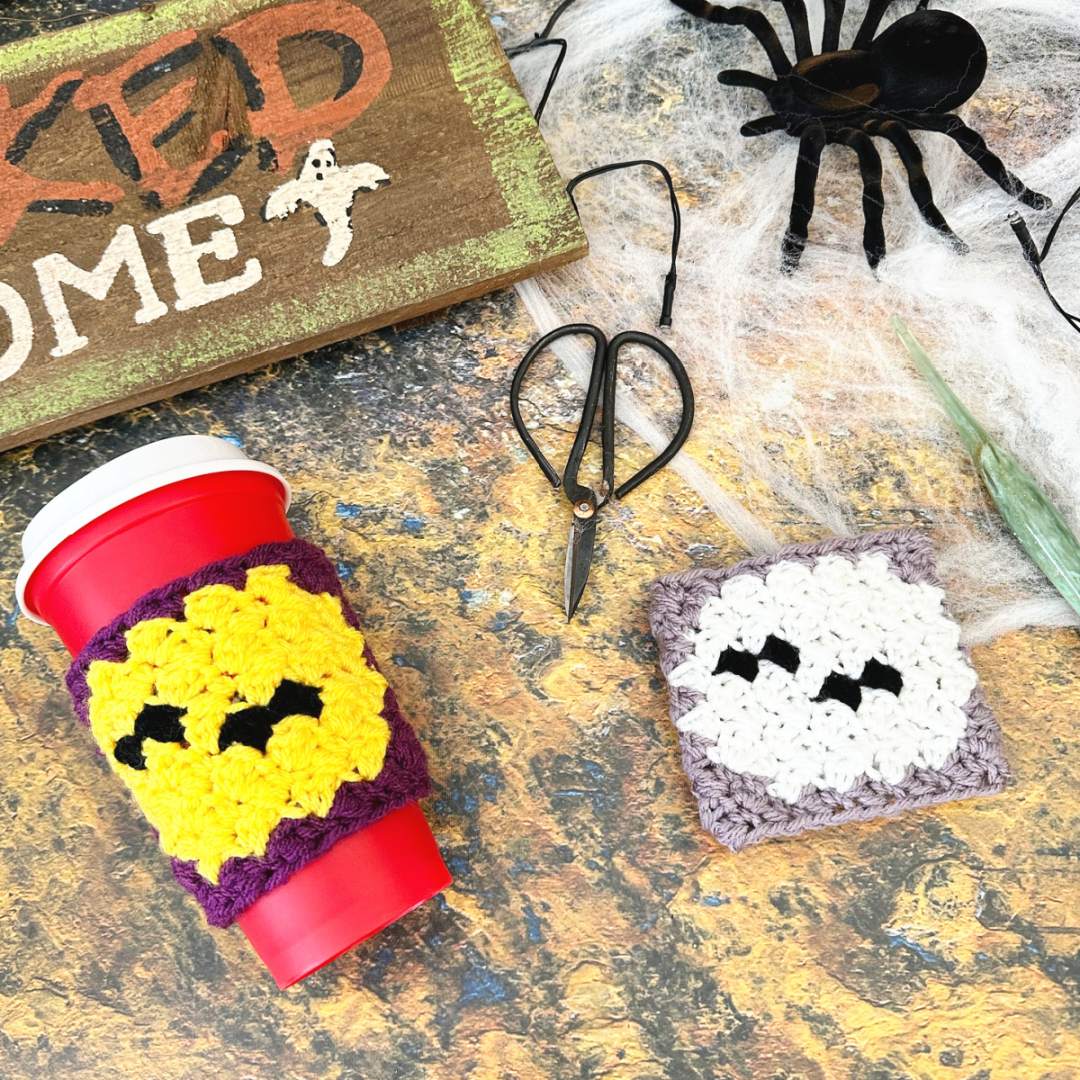 Halloween Moon Cup Cozy Crochet Pattern by Crystal Marin