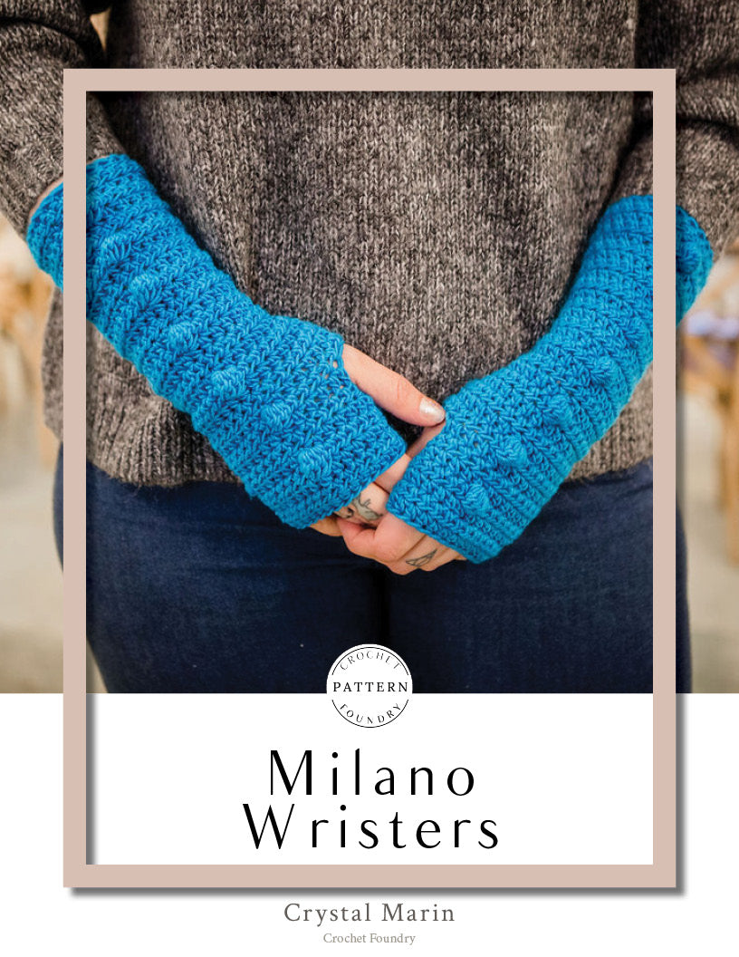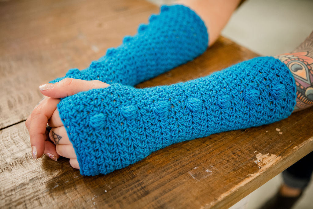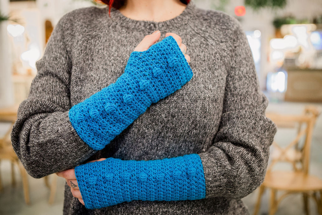 Sleek and beautiful in bobbles, the Milano Wristers will keep your hands warm and stylish. These wrist warmers feature a longer length and striking bobble design. Furls’ Whims Merino DK yarn shines in this one skein pattern.