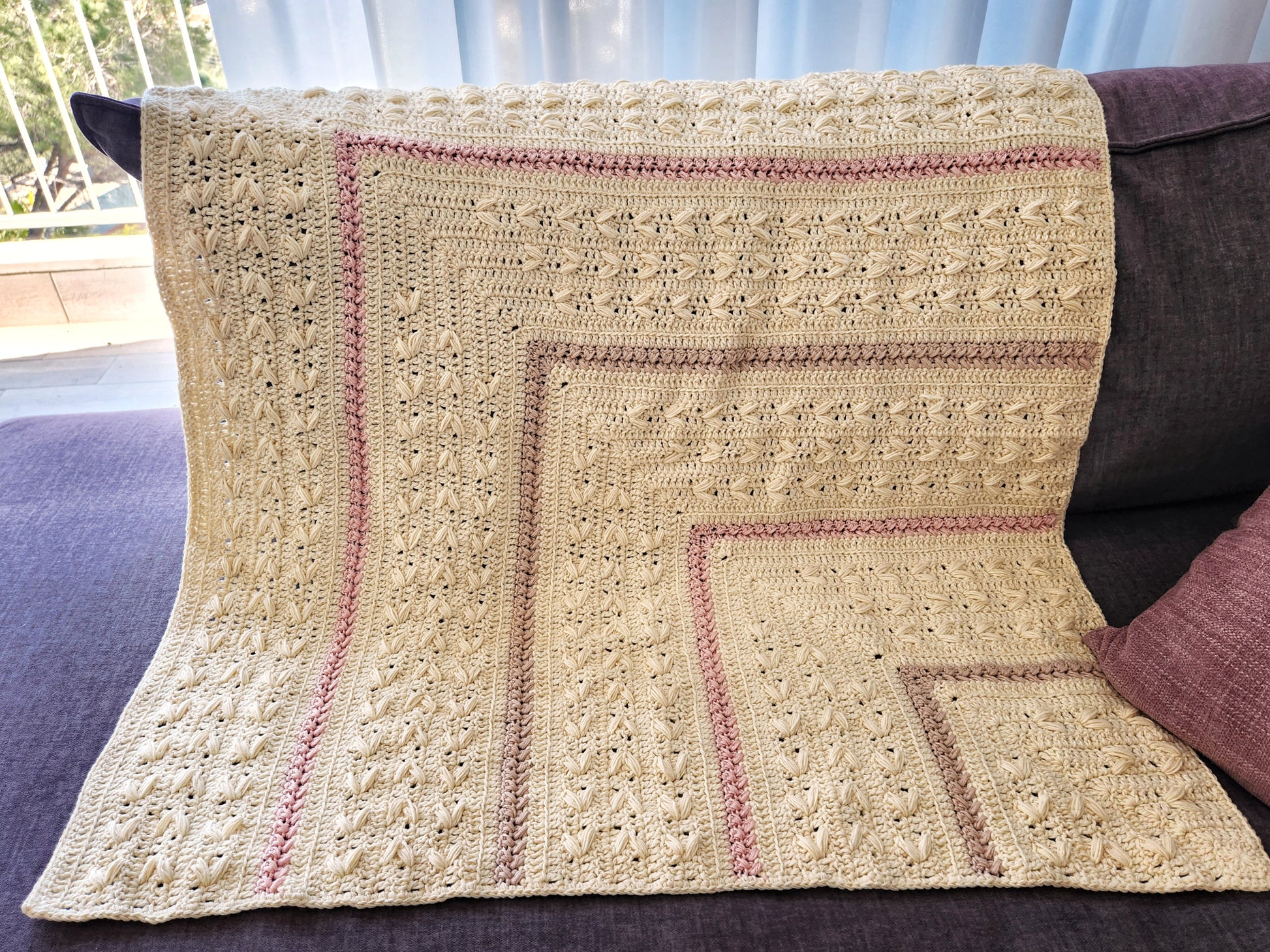 The blanket is worked using the mitered square crochet method, which spears you the long starting chain.