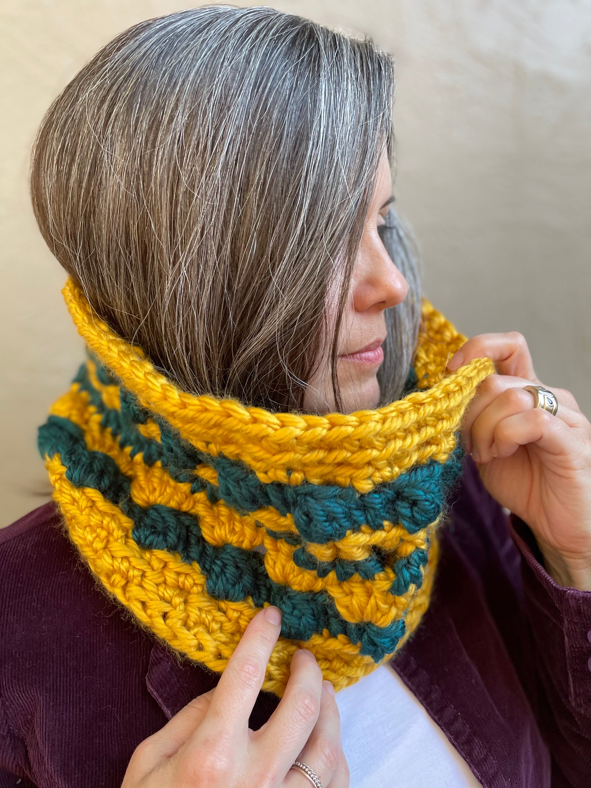 The Monte Cowl is a cozy, chunky cowl. Combine color and texture simply in a single piece to show off your favorite colors. This cowl shines with style while keeping your neck warm.