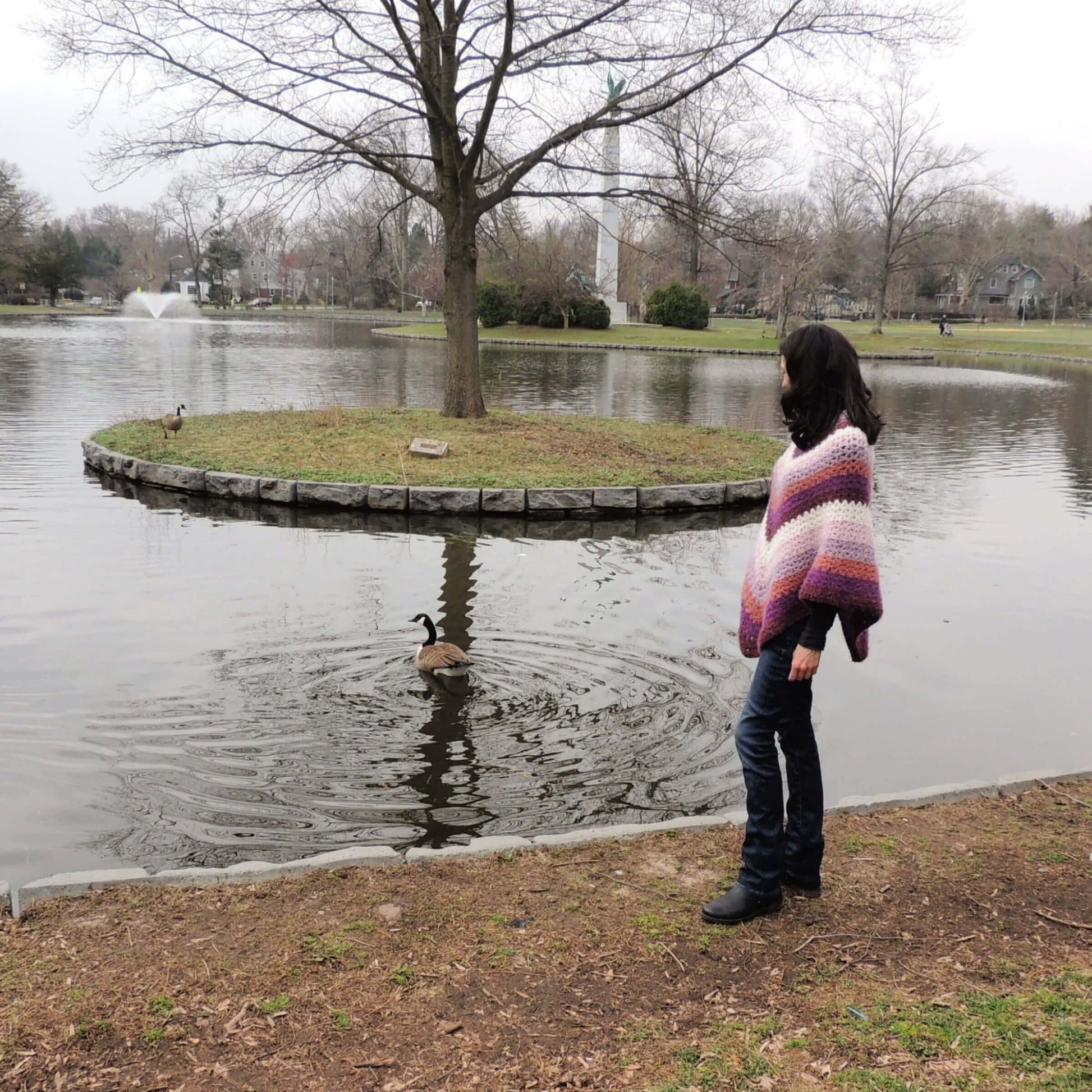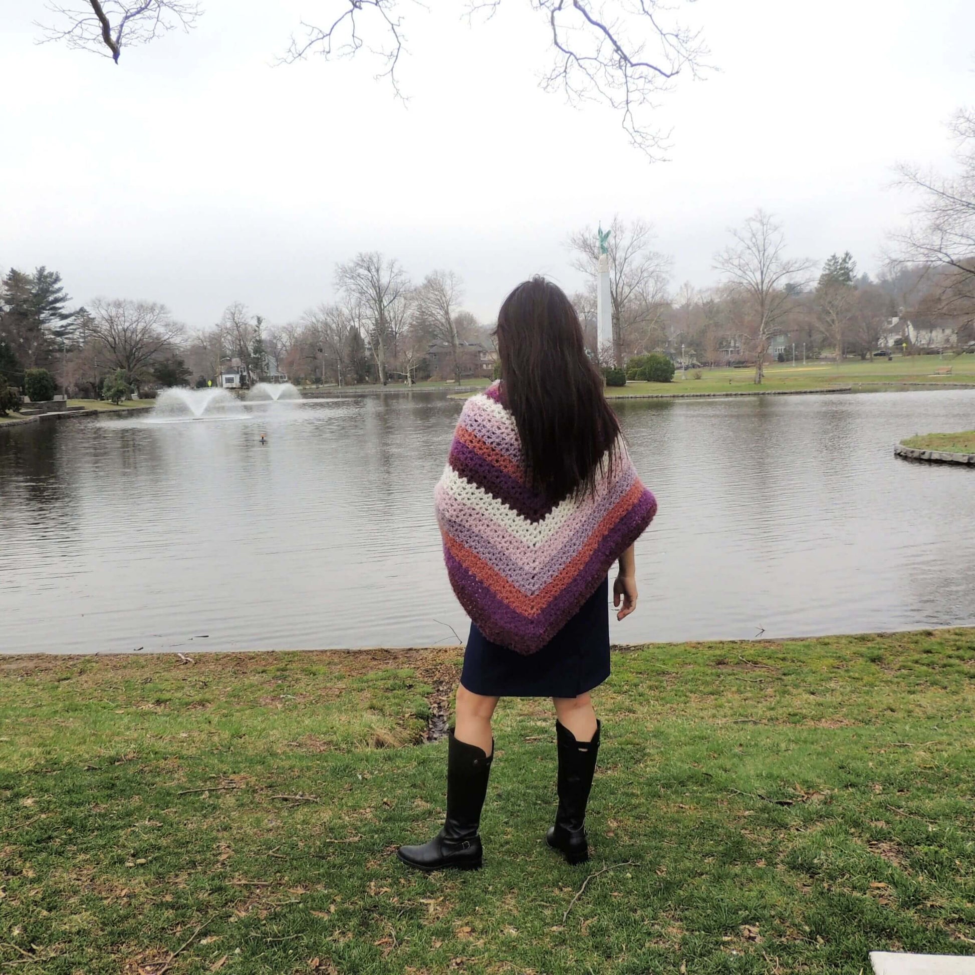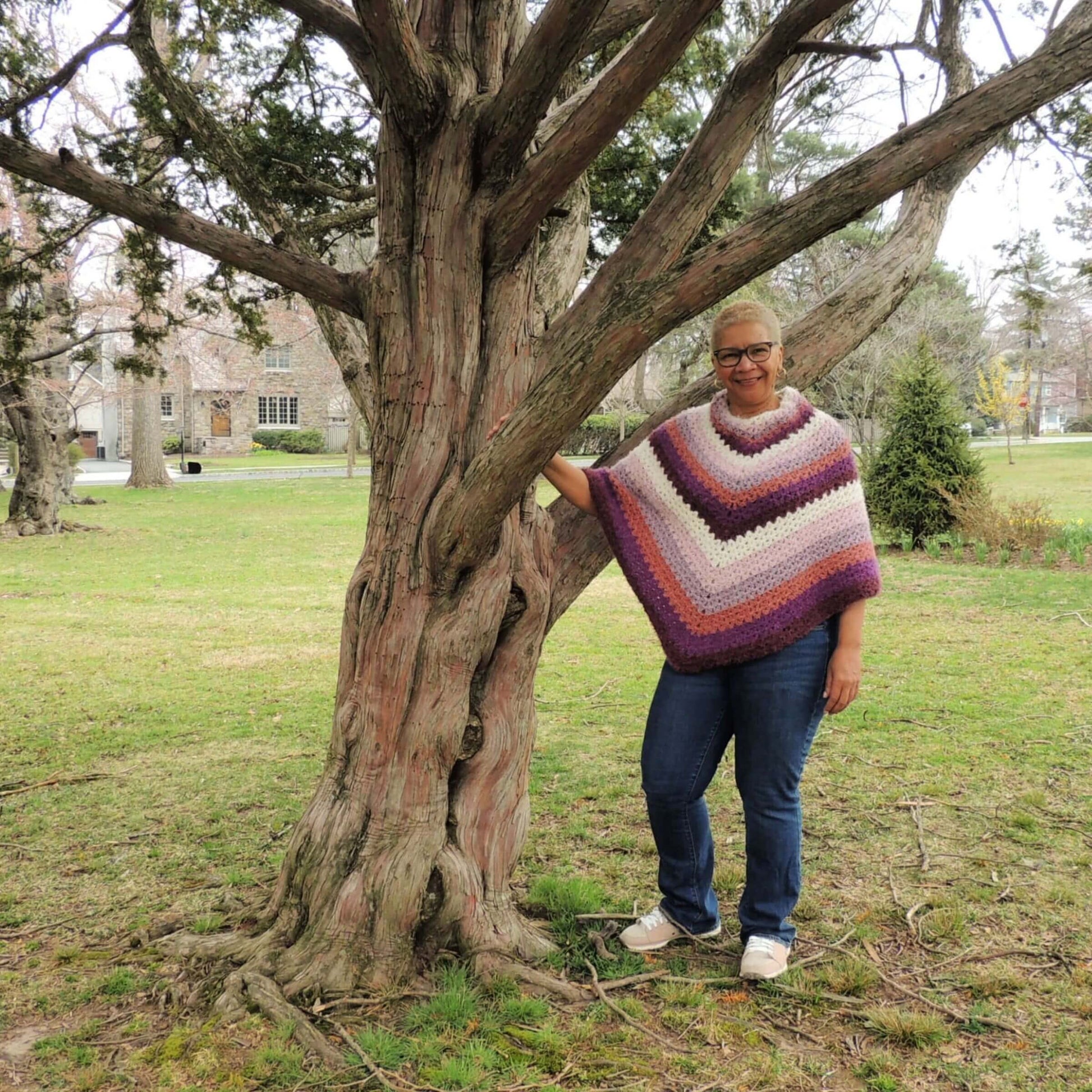 The Neapolitan Scratch N Sniff poncho is a lovely, comfy crochet poncho that will make you feel beautiful and cozy. I made this poncho at my local knit and crochet group, and several of the wonderful ladies there modeled the finished poncho for me. My friend Rachel (one of my stunning models) named this poncho because it looks like a scratch n sniff sticker for Neapolitan ice cream. I hope you enjoy this pattern as much as my friends and I do!