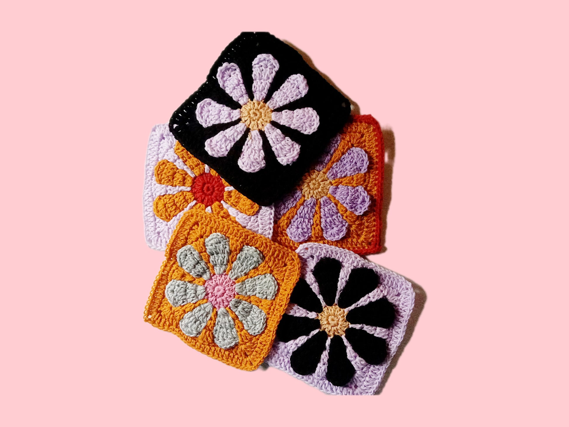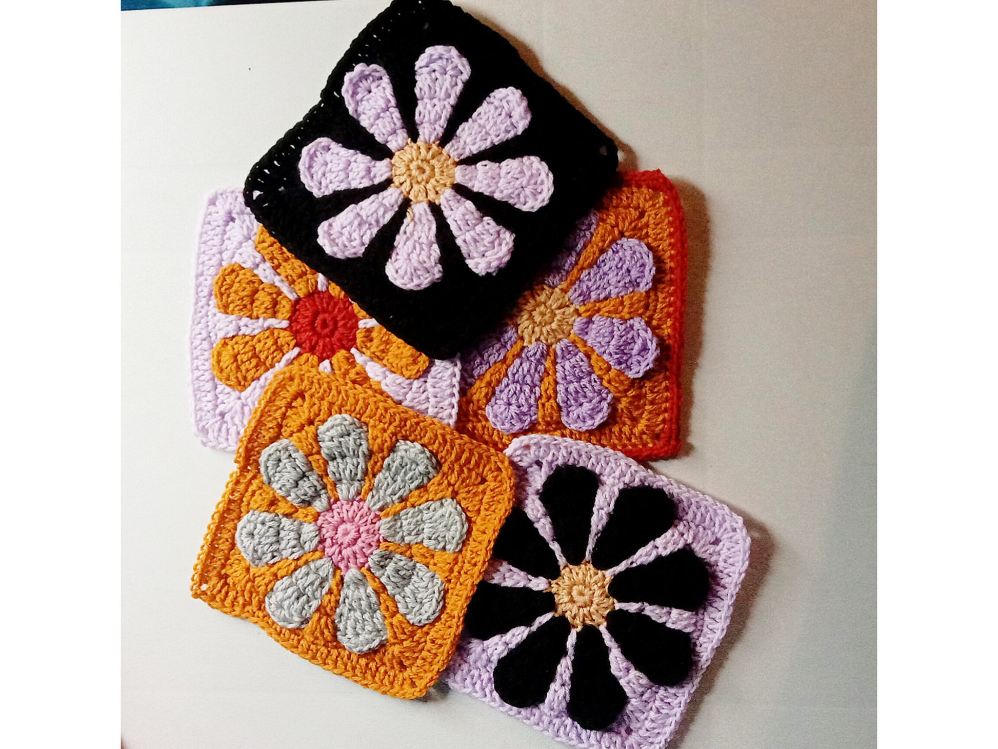 Retro Daisy Crochet Granny Square Pattern by Helencraftcrochet