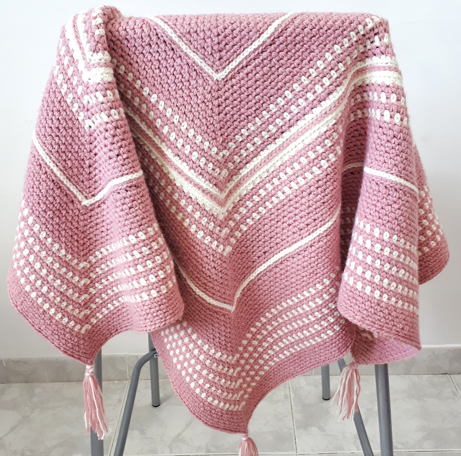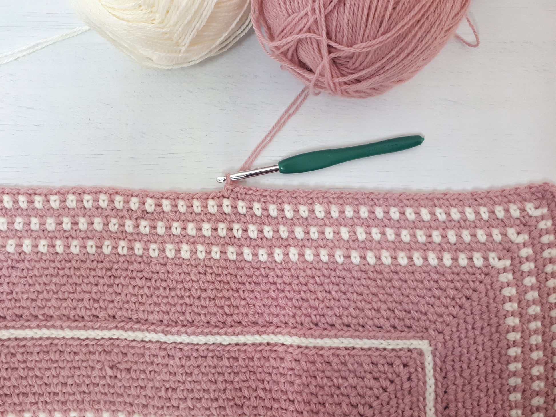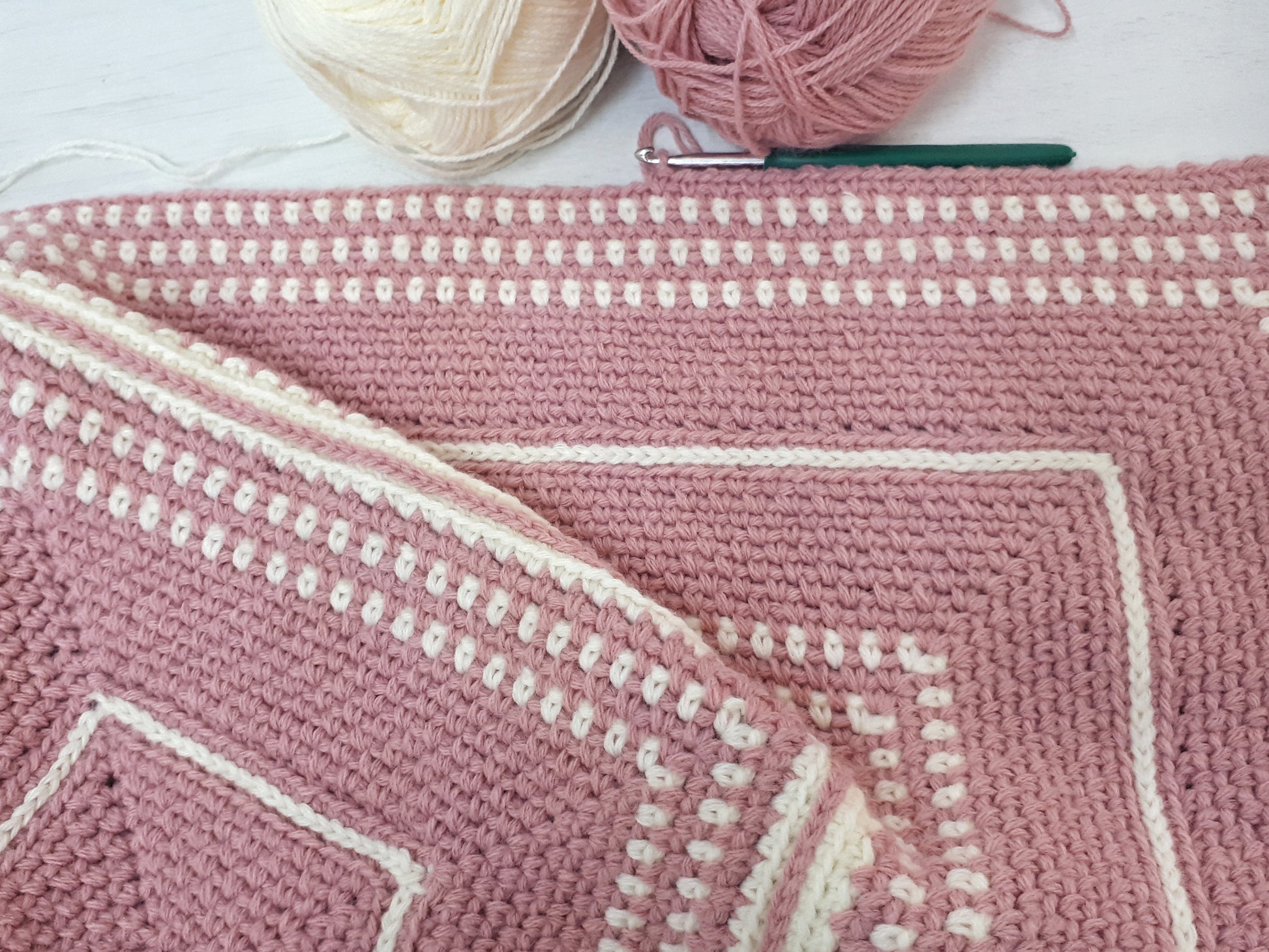 I designed this blanket as a gift to a friend for her new niece. They named the baby ‘Samma’ which means ‘Soar’, I really love this beautiful meaning and decided to name the pattern the same :) The pattern is based on the moss stitch and is worked in the round to create the square from the middle out. There are more easy techniques involved to give more interest and texture to the blanket. The pattern is written using English (U.S) terminology. The blanket is crocheted with 2 strands of Fingering yarn, you can also use Aran yarn and use 1 strand (same amount of yarn).