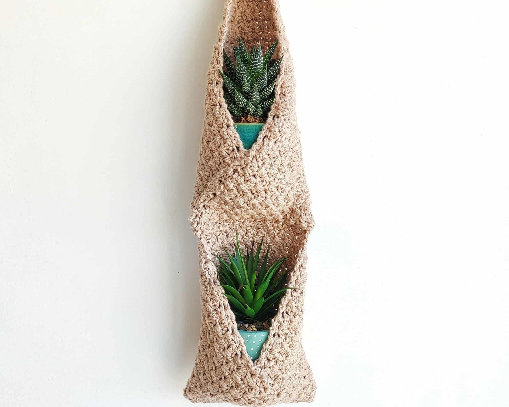 This crochet double hanging basket pattern is also perfect as a plant hanger!